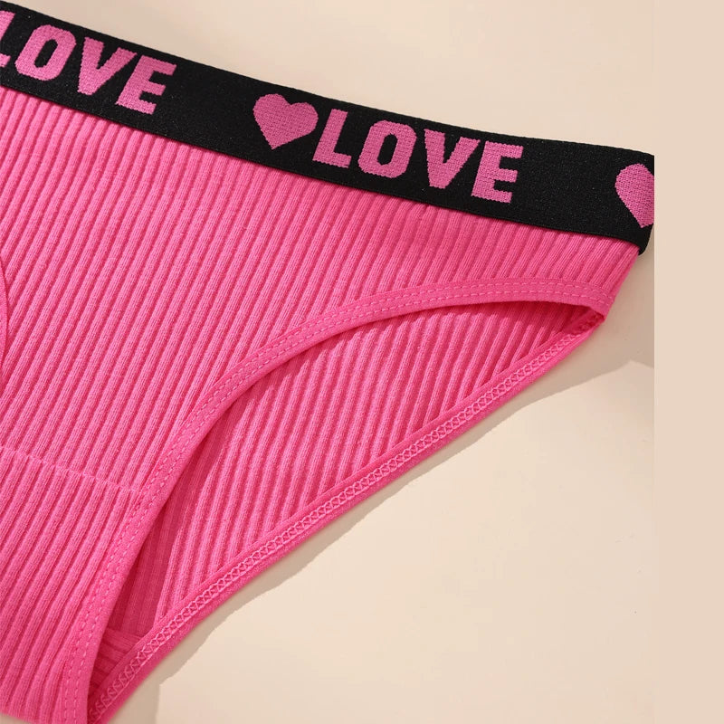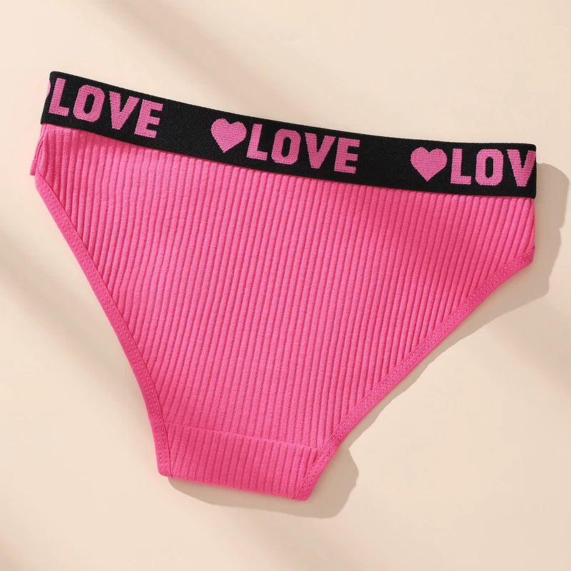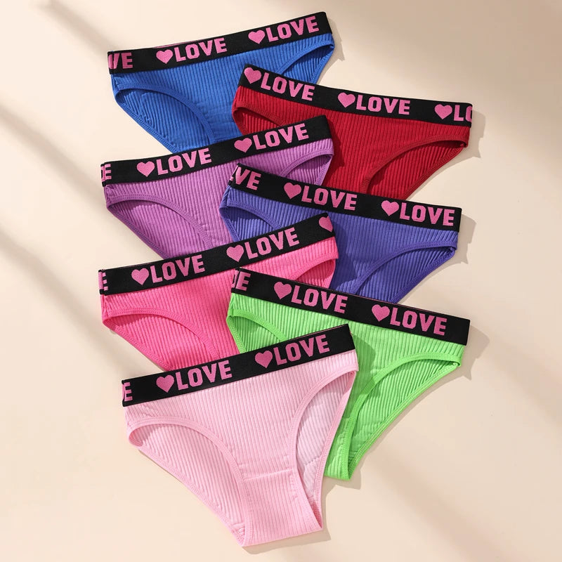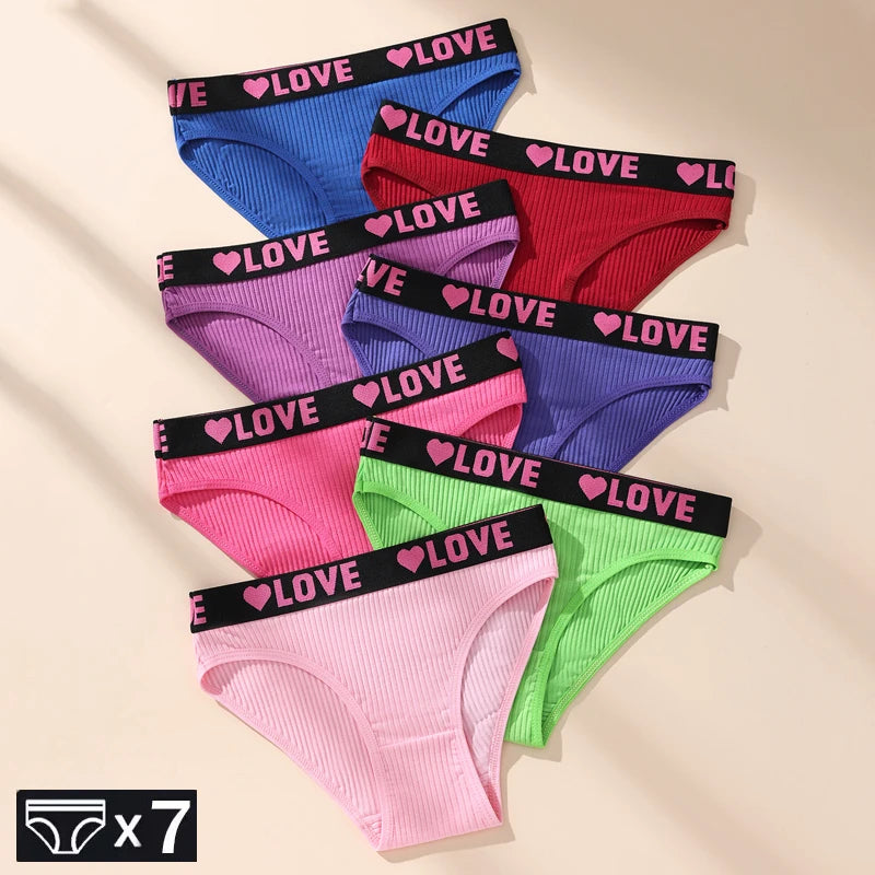 7PCS Women's Cotton Low-Rise Briefs – Soft Stretch, ribbed, Love Print Panties