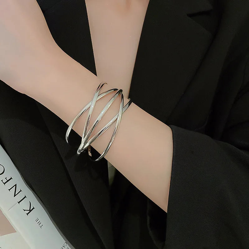 Multilayer Metal Wire Vintage Bangles -- Wide Open Cuff Bangle