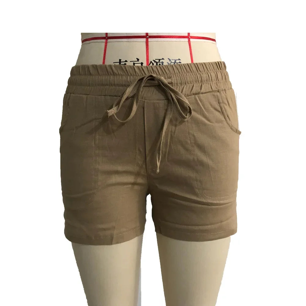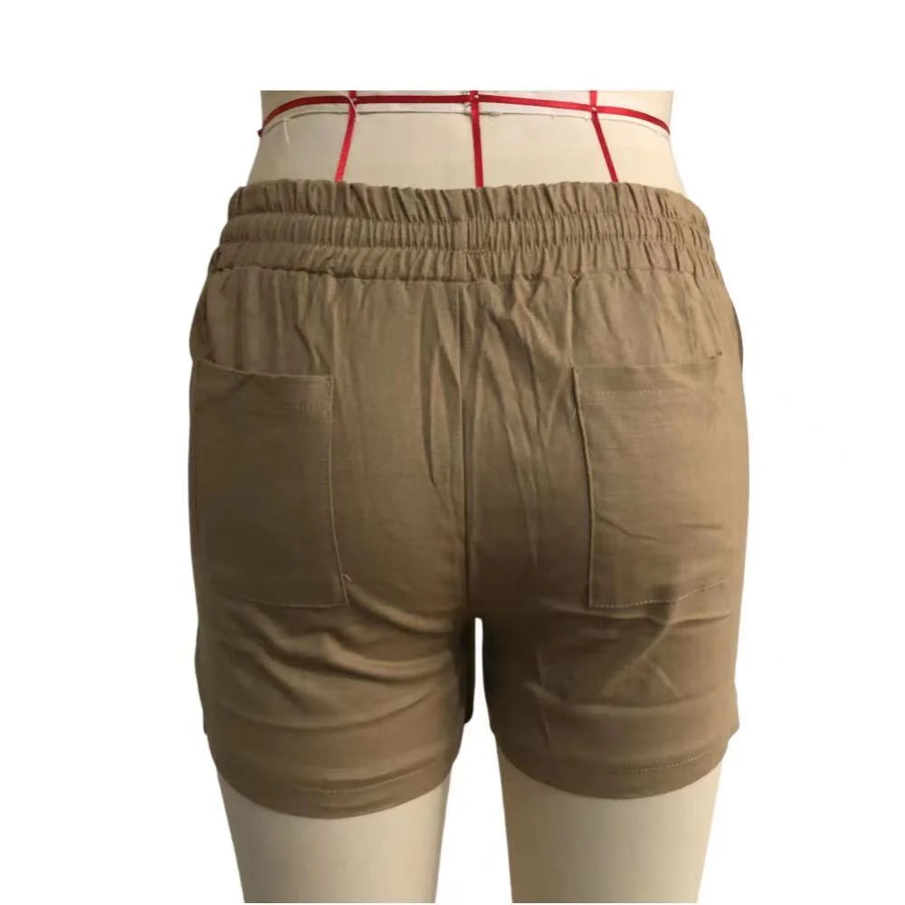 Women Summer Casual Solid Color Elastic Waist Lace Up Shorts